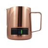 The Latte Pro Milk Jug is the ultimate in milk frothing. This ambidextrous jug allows barista pros to steam any milk to just the right temperature every-time, with side thermometers on both sides of the jug.